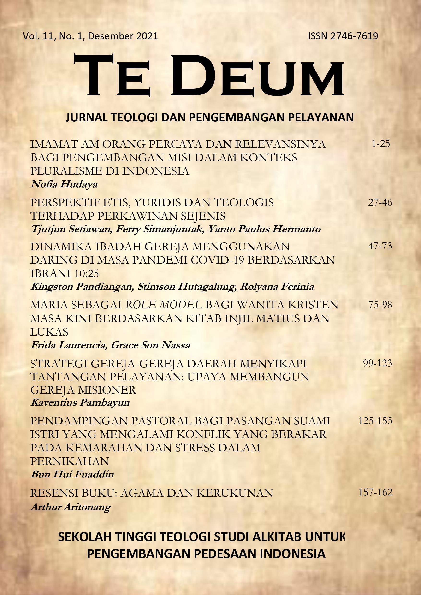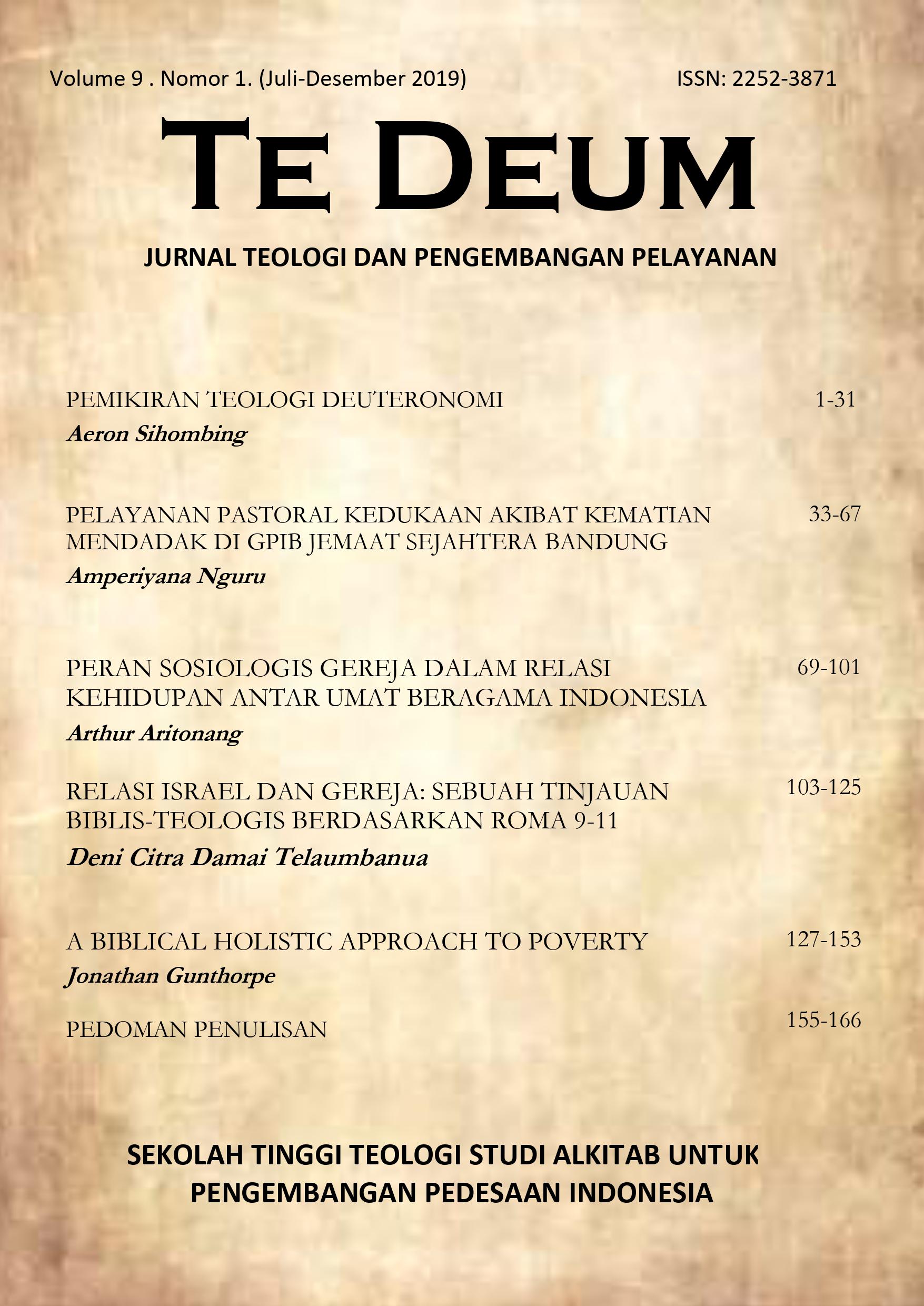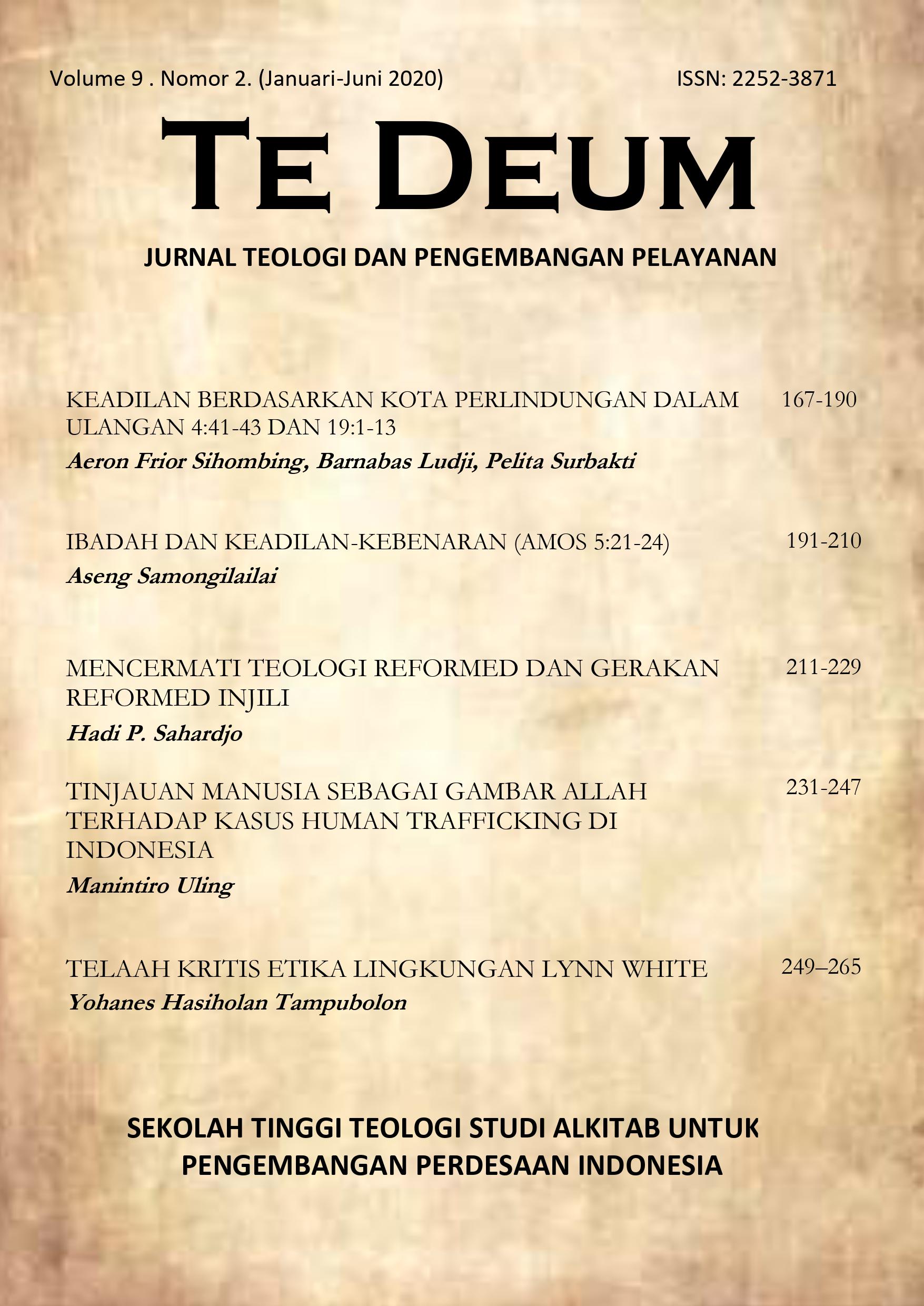 Pada terbitan Te Deum (Jurnal Teologi dan Pengembangan Pelayanan) kali ini menetapkan Tema: "Teologi dan Dinamika Sosial: Menjawab Tantangan Zaman".
