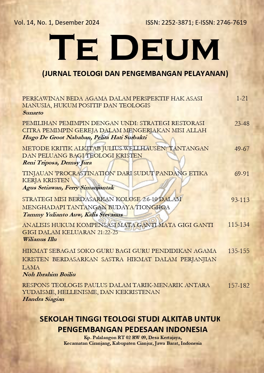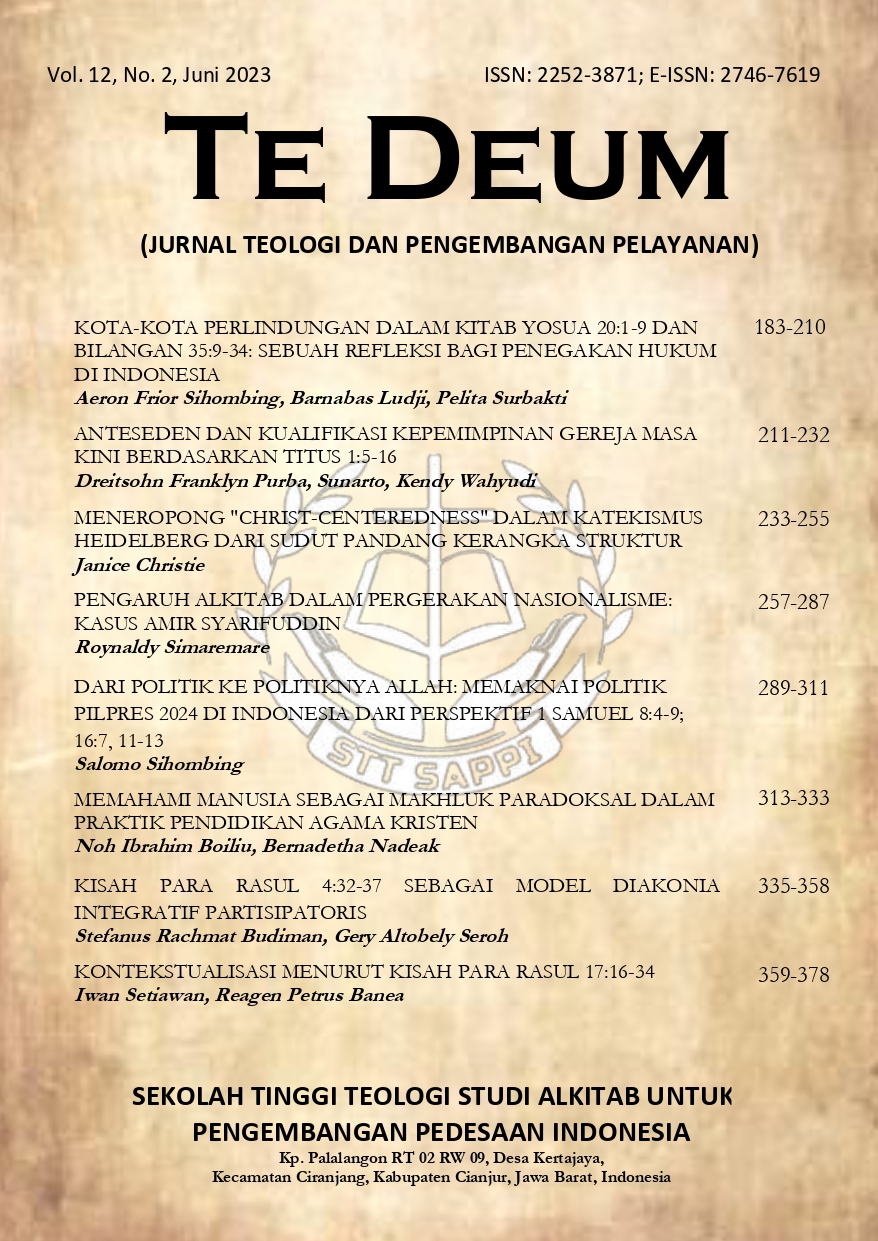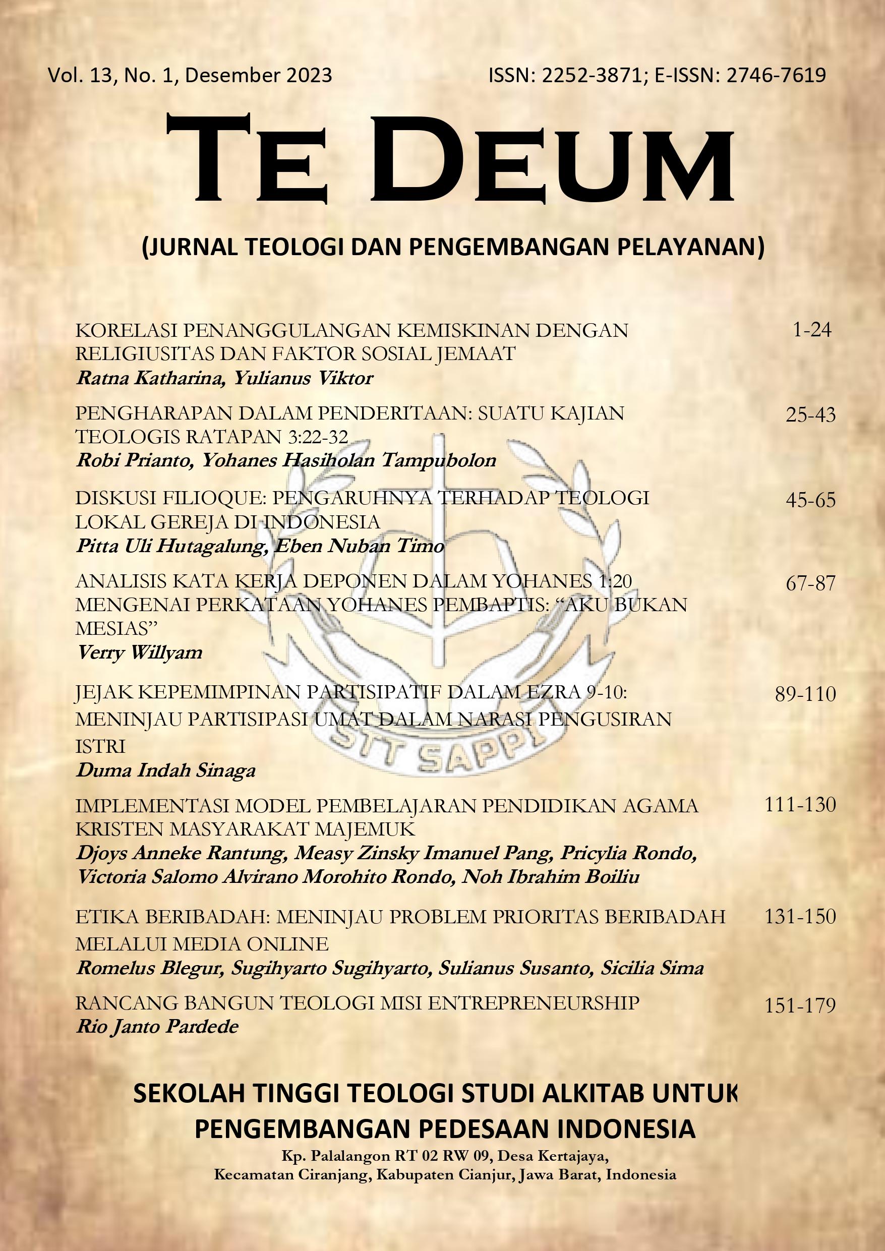 Pada terbitan Te Deum (Jurnal Teologi dan Pengembangan Pelayanan) kali ini menetapkan Tema: "Teologi dan Dinamika Sosial: Menjawab Tantangan Zaman".